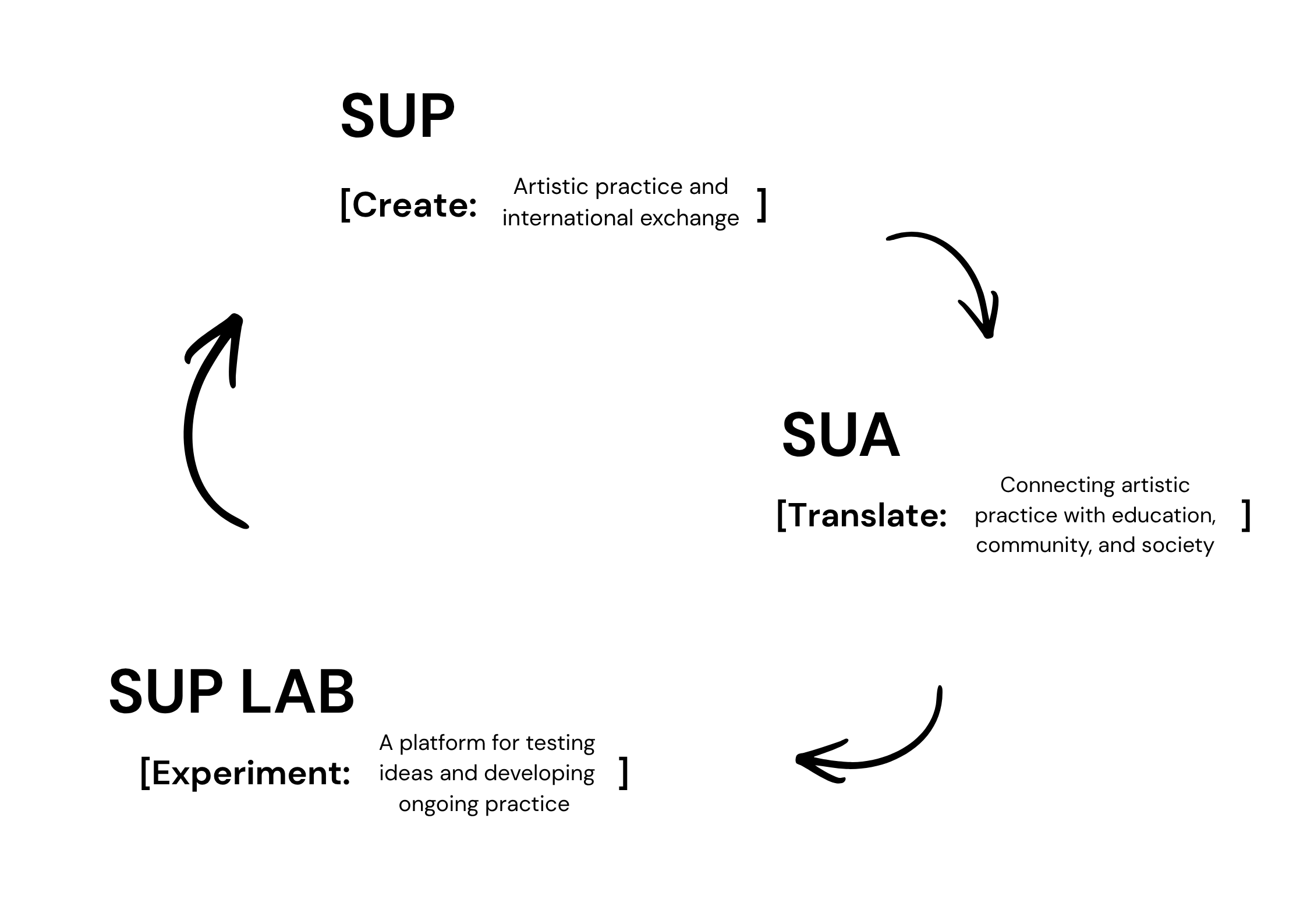 SUP operates through a connected system linking artistic practice, public engagement, and ongoing experimentation.