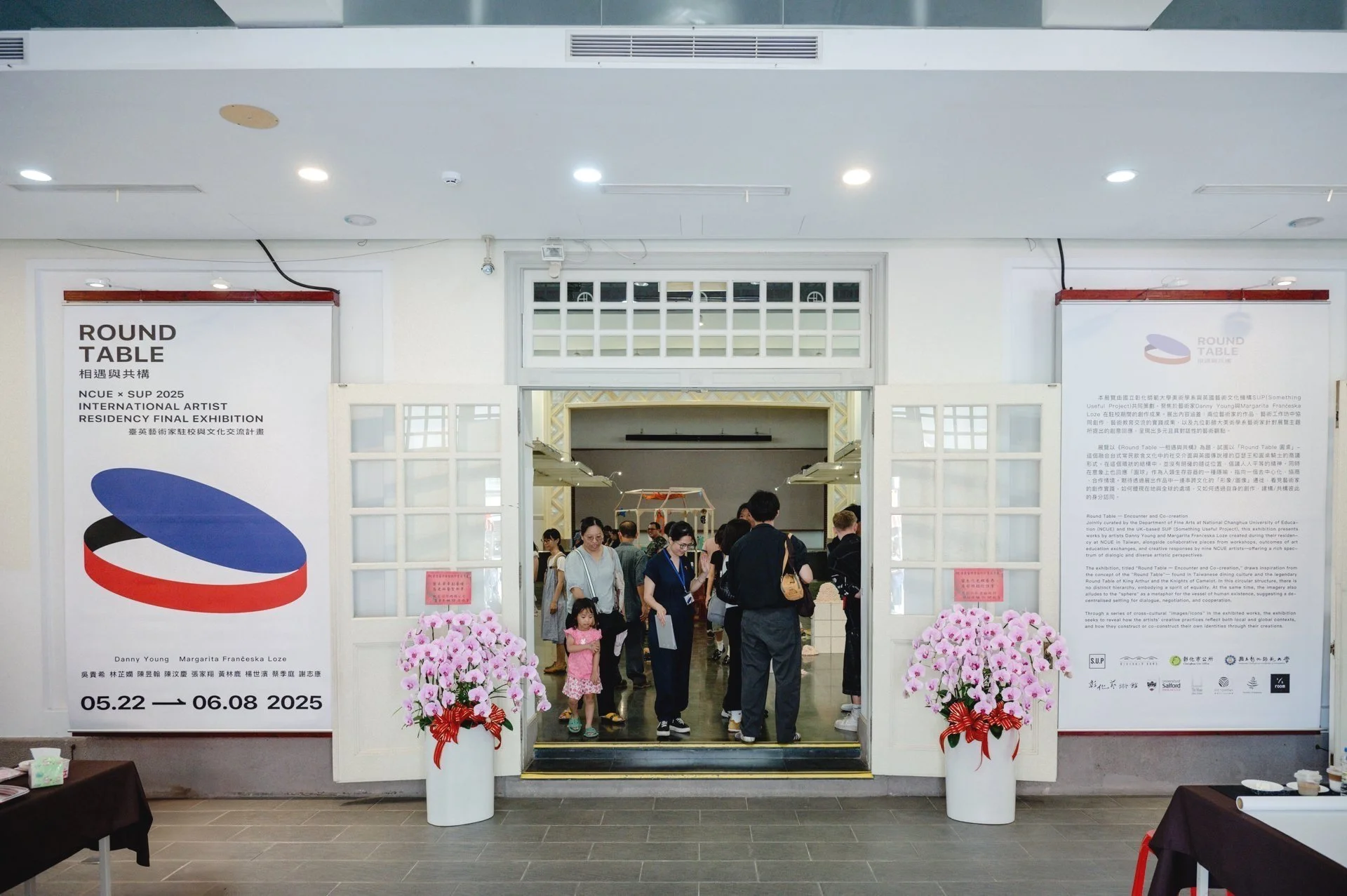「Round TABLE:相遇與共構」是一場展覽,呈現了SUP對藝術的信念 - 藝術是一種跨國界的交流載體,連結著觀念、技能與文化,並透過藝術將大學與社群緊密連結。SUP 團隊深信,藝術並非獨立於公共生活之外,而是深深地融入其中。本次展覽旨在慶祝一個充滿相遇與共創機會的校計畫。展覽匯聚了不同的視角與創作方法,透過藝術家與學生的作品共同呈現,並在這個空間中碰撞交織。